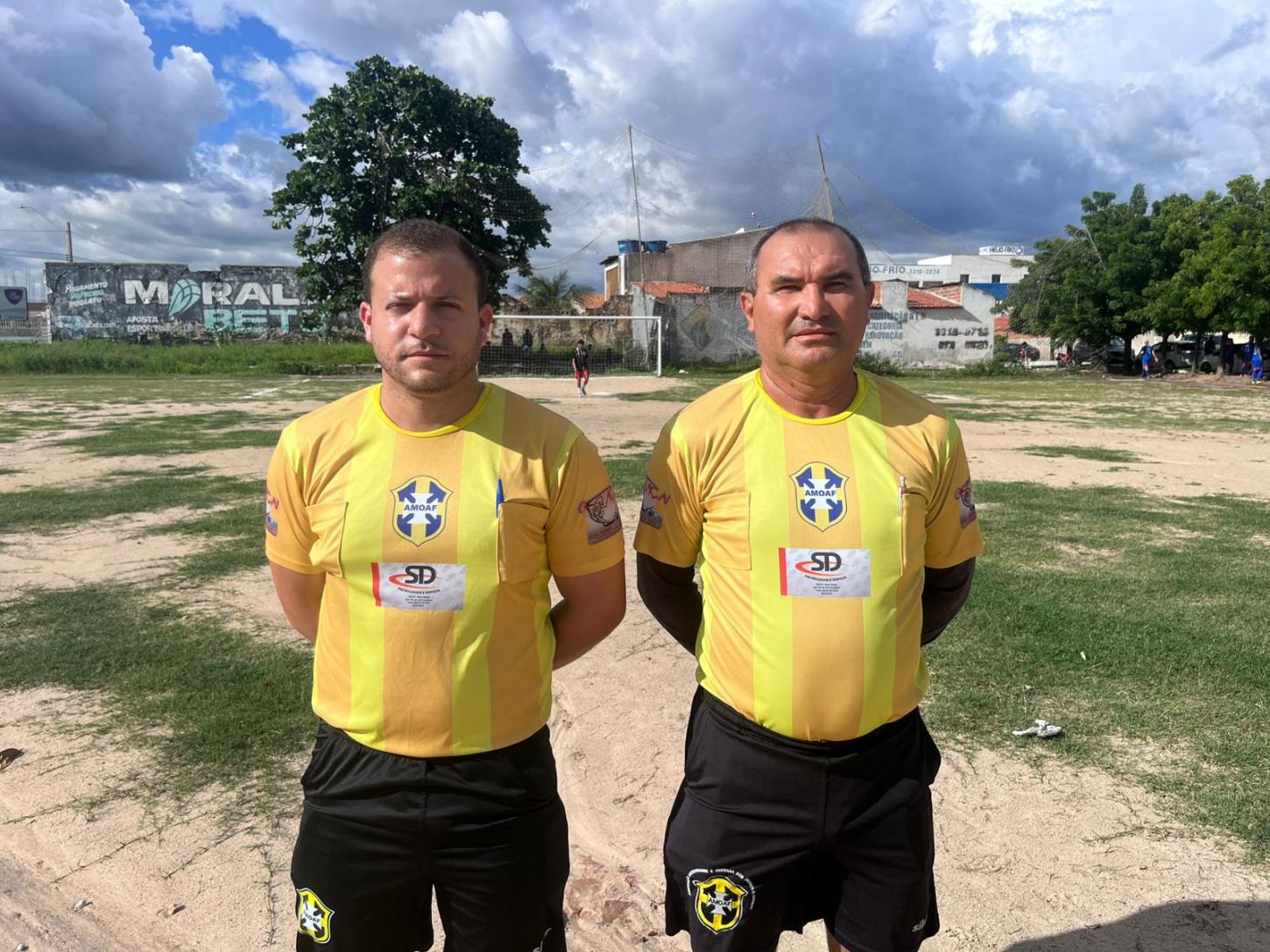 Gilberto Gomes e Riomar Mendes, árbitros AMOAF, apitam o jogo.