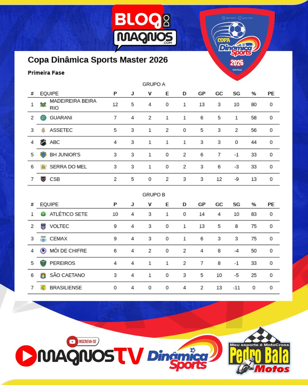 Acompanhe todas as informações da Copa Dinâmica Sports Master 2026 no site SITE, Instagram e Facebook.