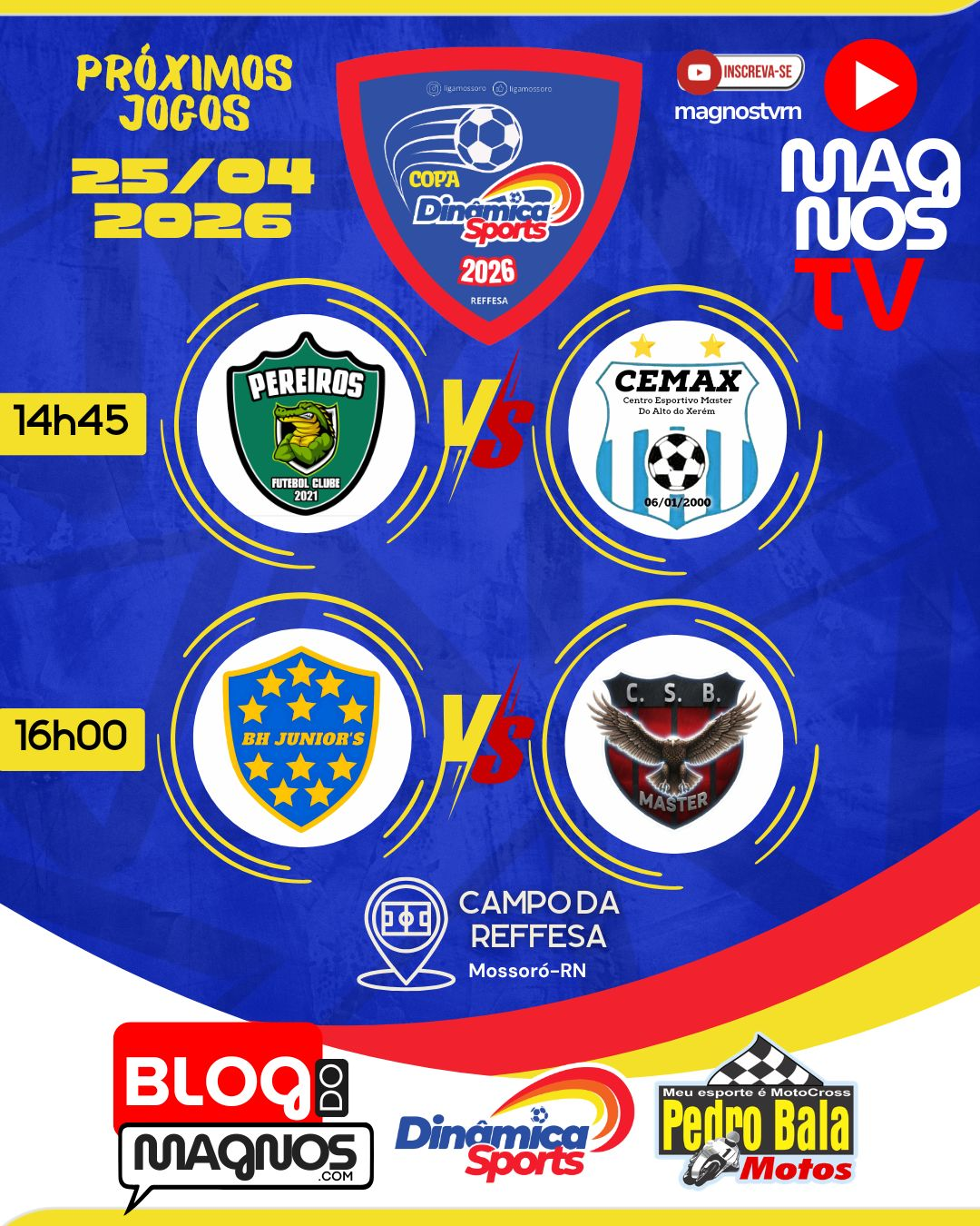 A Copa Dinâmica Sports Master 2026 é uma realização da Linerik Comunicação e Eventos, com patrocínio máster da Dinâmica Sports e apoio de Pedro Bala Motos.