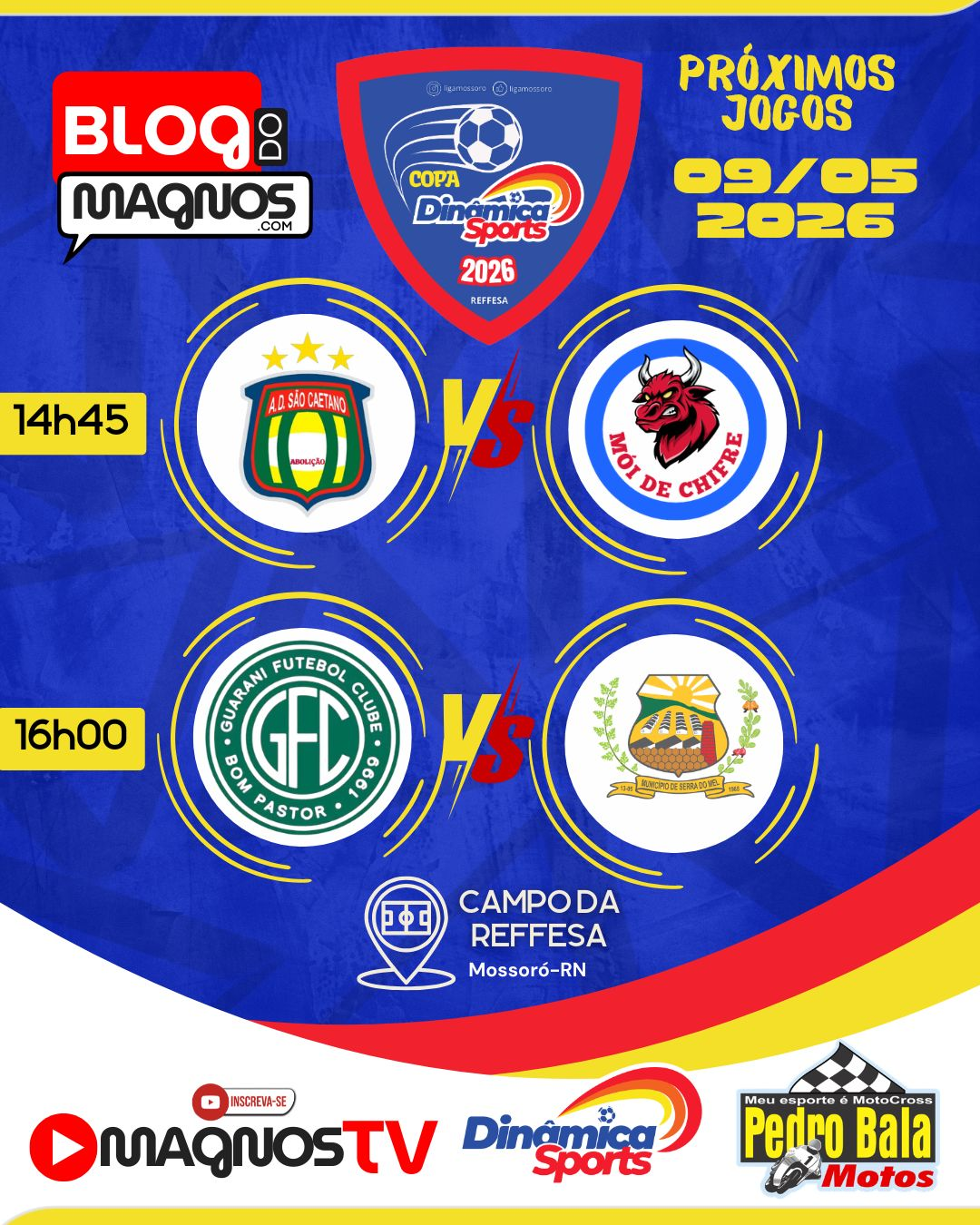 A Copa Dinâmica Sports Master 2026 é uma realização da Linerik Comunicação e Eventos, com patrocínio máster da Dinâmica Sports e apoio de Pedro Bala Motos.