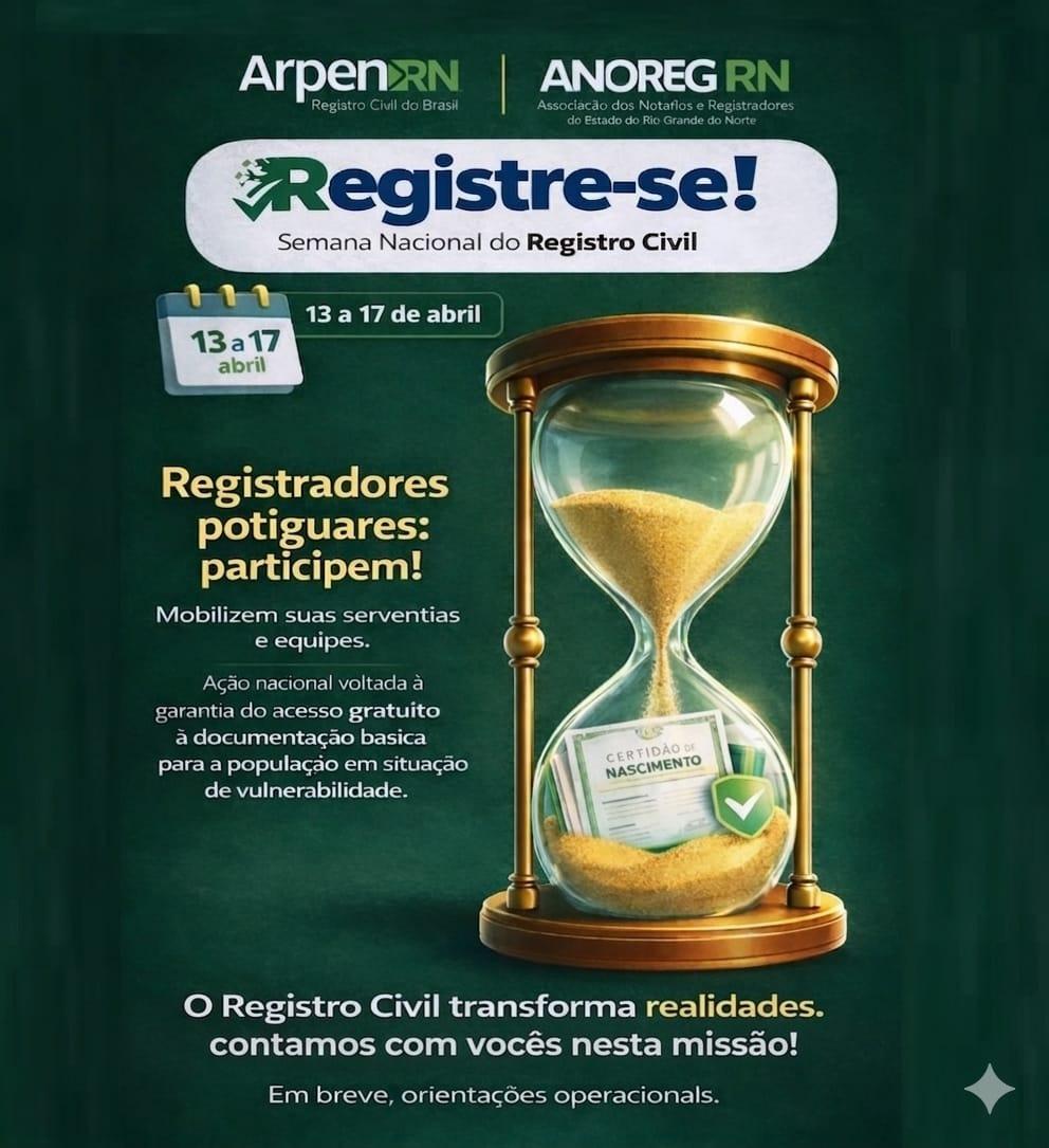 O Presidente da Associação dos Registradores de Pessoas Naturais do Estado do Rio Grande do Norte (Arpen/RN), Sadre Pantoja Alho, destaca que mais que um mutirão, "esta semana é um chamado à nossa missão: levar cidadania, inclusão e dignidade a quem mais precisa, assegurando que seus direitos sejam reconhecidos".